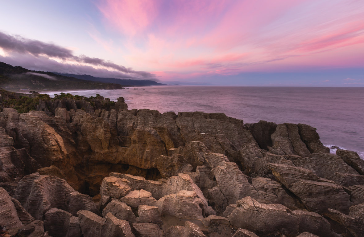 The Pancake Rocks in Punakaiki are on New Zealand’s West Coast, within Paparoa National Park.